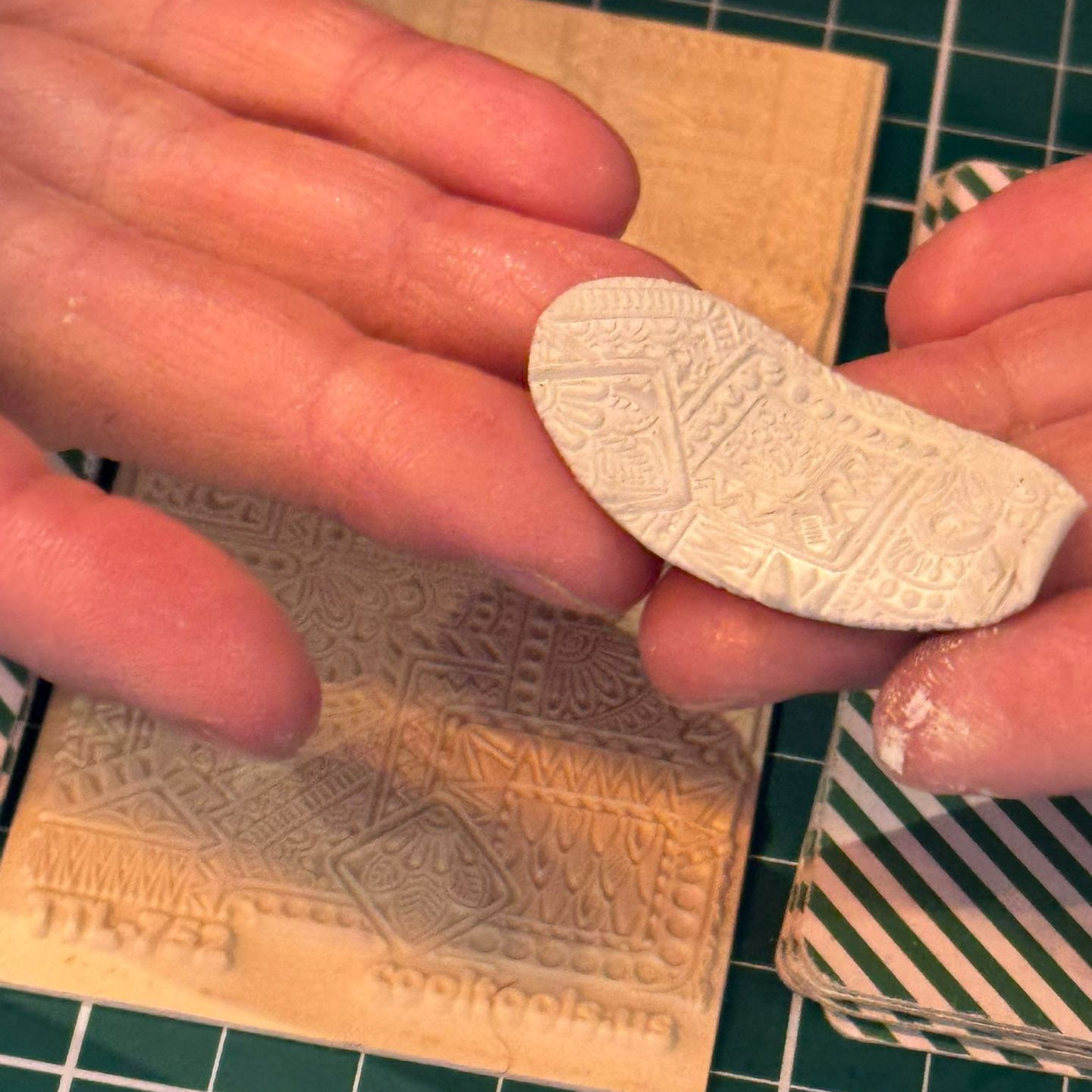 La pâte d’argent (Silver Clay), développée au Japon, est fabriquée à partir d’argent recyclé réduit en poudre très fine. Mélangée à de l’eau et à un liant naturel, elle se travaille comme une argile. Après cuisson, le liant disparaît et révèle un bijou en argent pur (99,9 %).